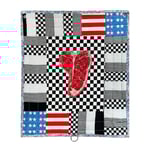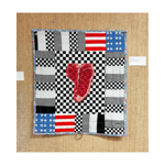 Materials: Fabric, batting, thread, image transfer, grommets, found object