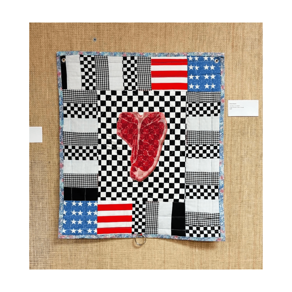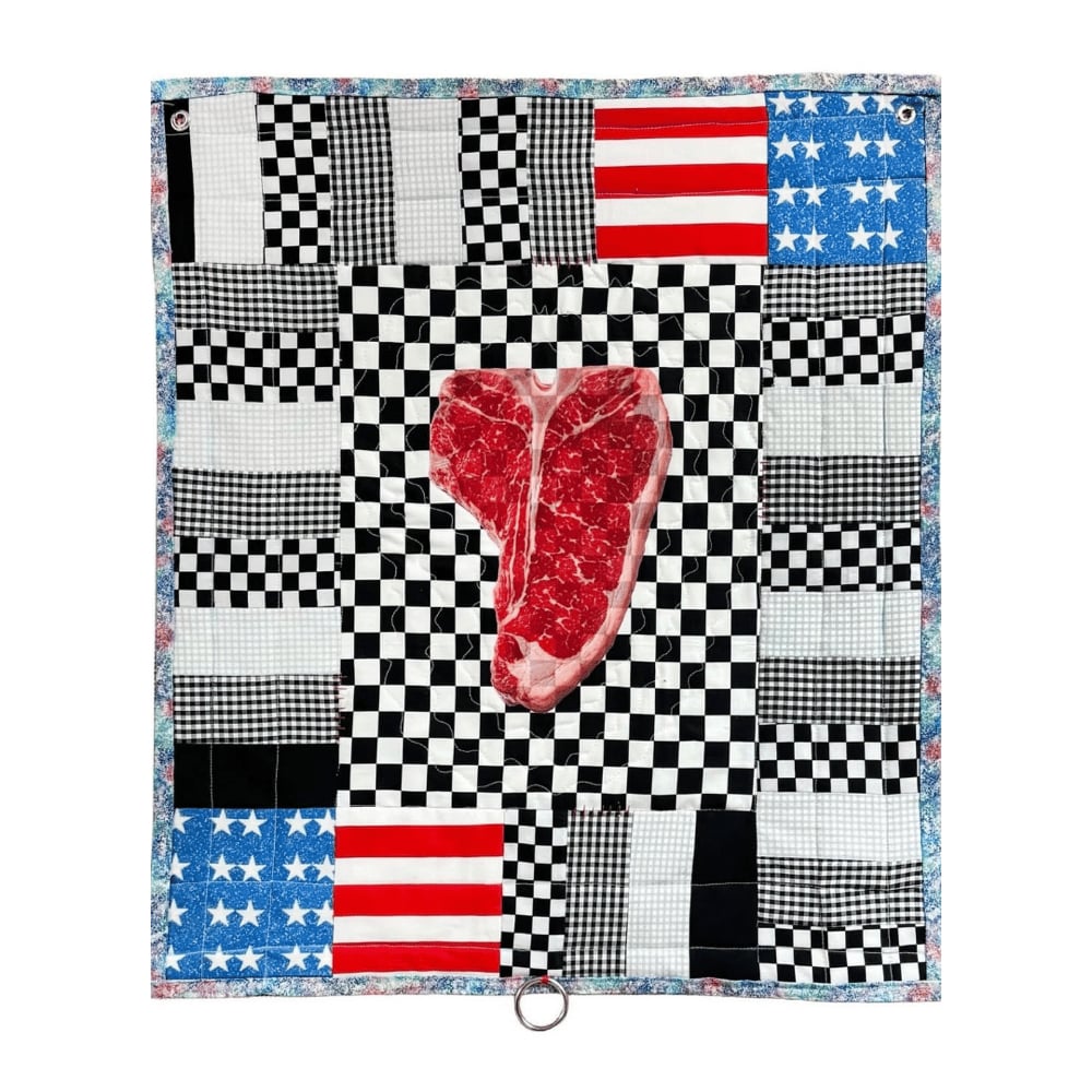 🥩 Essentials only: A marbled T-bone centered. This quilt is about being a productive body. A good cut. A measurable output. Prime grade citizen. A soft object about hard realities. (๑•﹏•)